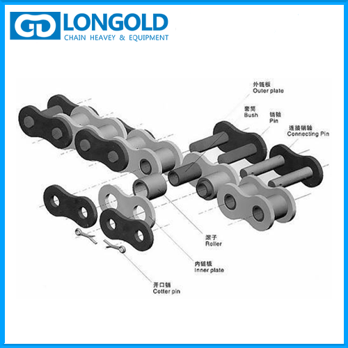 傳動鏈條是一類工業(yè)消耗品,通常由內(nèi)外鏈板+套筒+銷軸+滾子組合而成,部分型號的鏈條只有套筒沒有滾子