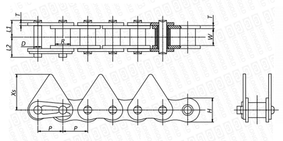 上圖為不銹鋼尖齒鏈I的結構圖。