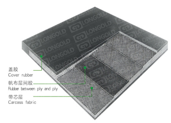 輸送帶由蓋帆膠,布層間膠,帶芯層組成