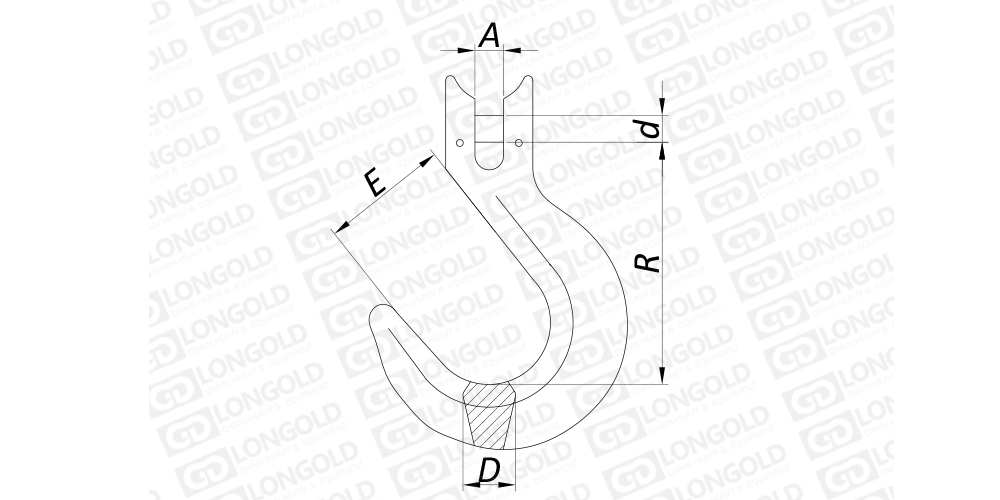 上圖為高強(qiáng)度羊角吊鉤的結(jié)構(gòu)圖。