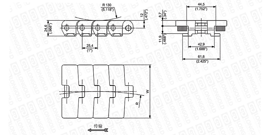 轉(zhuǎn)彎鏈板1”節(jié)距 |