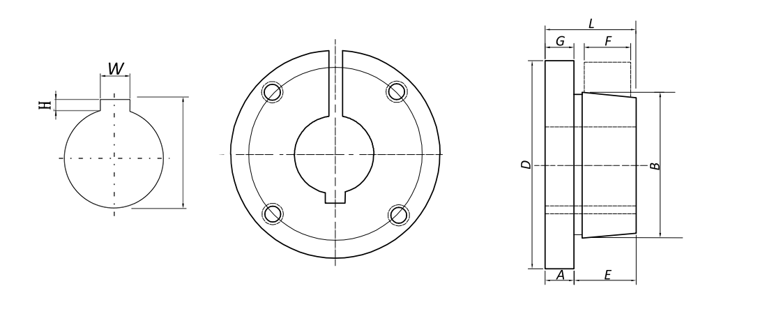 拆卸:拆卸螺栓,將其放入產(chǎn)品中心的螺紋孔中。當(dāng)它們被拉起時,它們將充當(dāng)錐套法蘭上的千斤頂螺絲,以釋放錐套和輪轂之間的抓緊力。