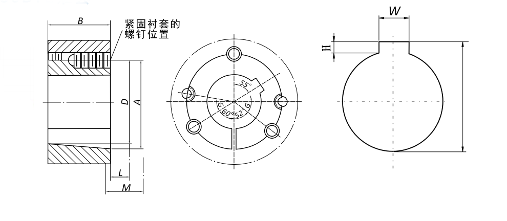 ①.對BTL錐套的孔及錐面進行清理、去油,同時清理輪體的錐孔,將BTL錐套從輪轂側(cè)裝入輪體,并對齊螺栓孔(半螺紋孔須與 半卸孔對齊)。 |