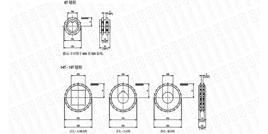 1.圓孔鏈輪表示直徑,方孔鏈輪表示邊長。