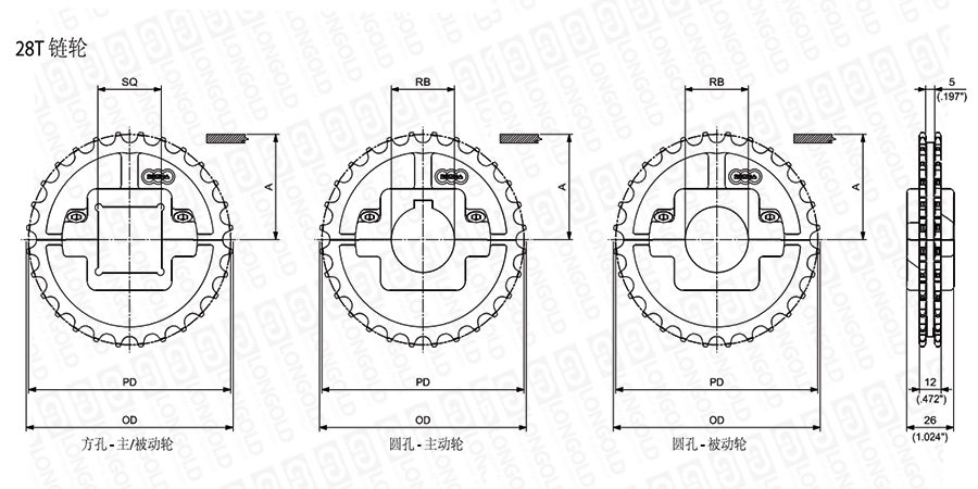 1.圓孔鏈輪表示直徑,方孔鏈輪表示邊長(zhǎng)。