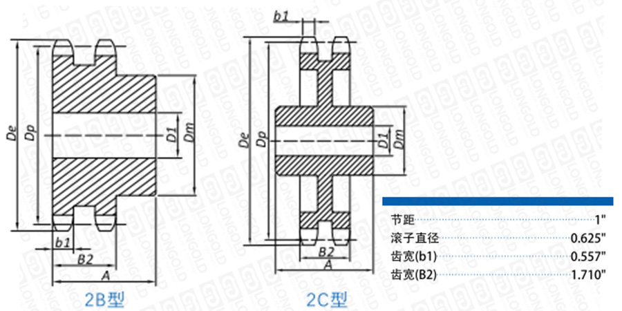 ■2B型鏈輪尺寸表