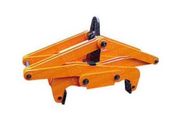 機(jī)械杠桿重力式夾鉗,采用杠桿的工作原理,依靠板(方)坯自重夾持板坯并緊鎖,開閉機(jī)構(gòu)為螺旋往復(fù)式,能自動(dòng)實(shí)現(xiàn)夾鉗臂的開閉動(dòng)作,可配置機(jī)械或聲光電指示裝置增加開閉動(dòng)作可靠性。夾鉗不需要任何動(dòng)力源,結(jié)構(gòu)簡(jiǎn)單合理,動(dòng)作靈活??蓪?shí)現(xiàn)單塊、多塊板(方)坯的吊運(yùn)。