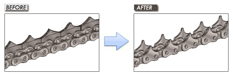 對將鏈條和工具螺桿固定住規(guī)格,我們提供將附件裝配后的整體鏈條。 將不穩(wěn)定的單側(cè)附件輸送變更成兩側(cè)附件輸送,實現(xiàn)了穩(wěn)定輸送。